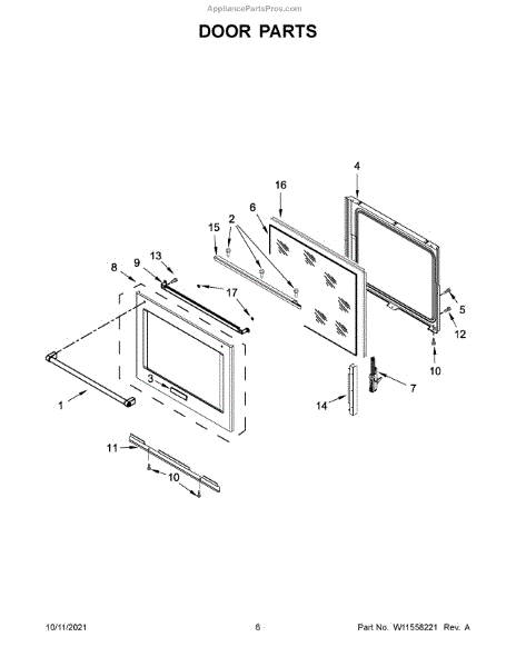 This door liner is the oven's inner door panel that helps protect the door cavity and support the inner glass. Replaces a damaged or worn liner to restore a clean interior surface and proper glass fit. What it does: