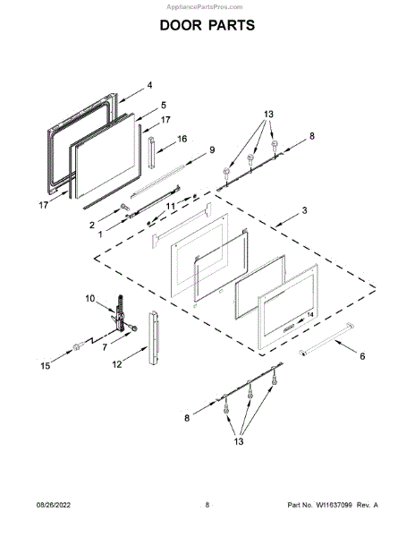 This door liner is the oven's inner door panel that helps protect the door cavity and support the inner glass. Replaces a damaged or worn liner to restore a clean interior surface and proper glass fit. What it does: