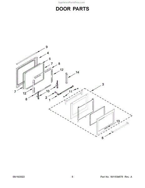 This door liner is the oven's inner door panel that helps protect the door cavity and support the inner glass. Replaces a damaged or worn liner to restore a clean interior surface and proper glass fit. What it does:
