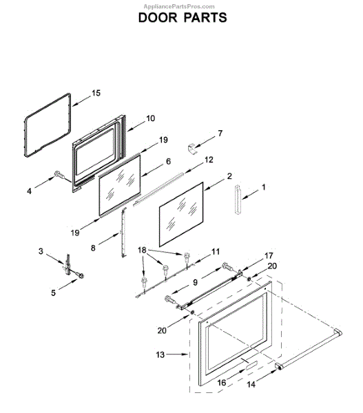 This door liner is the oven's inner door panel that helps protect the door cavity and support the inner glass. Replaces a damaged or worn liner to restore a clean interior surface and proper glass fit. What it does: