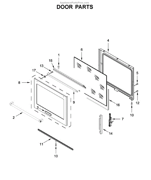The Glass Door is an OEM replacement part for Whirlpool ranges. It provides a transparent barrier for safe, convenient monitoring of baking and cooking.
