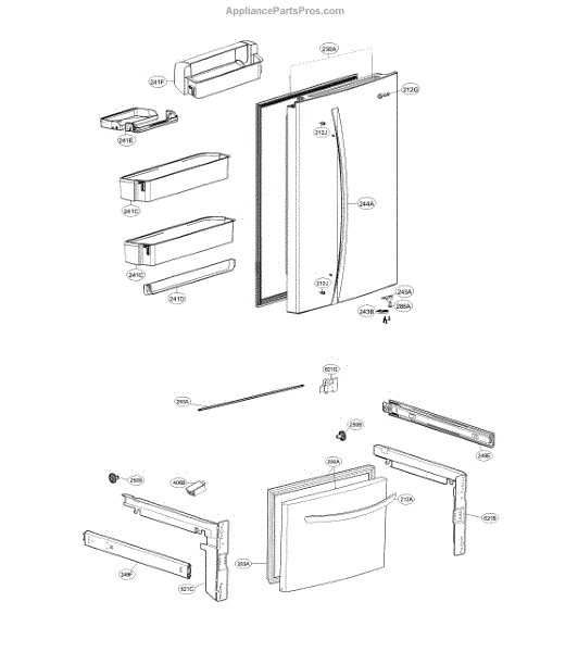 The Door Basket is an OEM part for LG refrigerators. It provides additional storage space on the refrigerator door, allowing for the organization and easy access to items such as bottles, jars, and condiments. The basket is designed to fit securely into the door, maximizing the available storage area.
