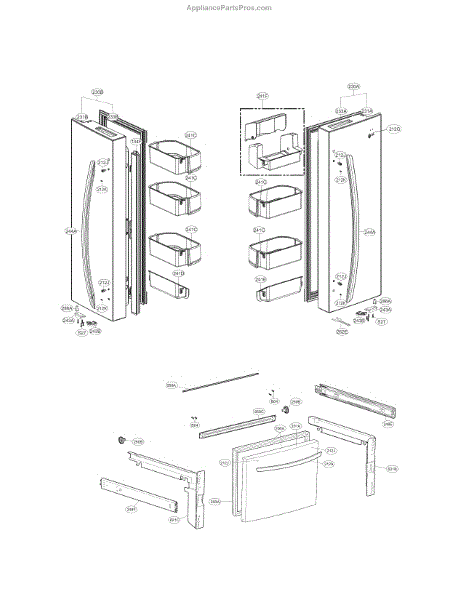 The Door Basket Assembly is an OEM part for LG refrigerators. This assembly is designed to fit securely on the inner door panel, providing convenient storage space for frequently used items such as condiments, drinks, and snacks.