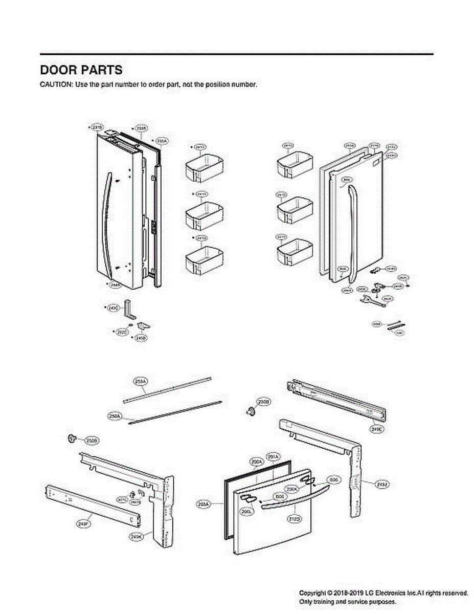 This is a door assembly that has been manufactured by LG for use with refrigerators. The door assembly includes multiple parts required for replacing the entire door, such as the inner liner and the outer panel. A working door is necessary for the refrigerator to maintain cold enough temperatures inside. If the current door is dented, bent, detached, or otherwise broken, it should be immediately replaced. This replacement might require two people, as the door is heavy. Take proper safety precautions, such as wearing work gloves and disconnecting the appliance from the power source.As a genuine OEM part, this door assembly has been sourced directly from the manufacturer and is only sold individually. This door assembly is manufactured from high-quality and durable materials to ensure durability. It is intended for use with refrigerators manufactured by LG.