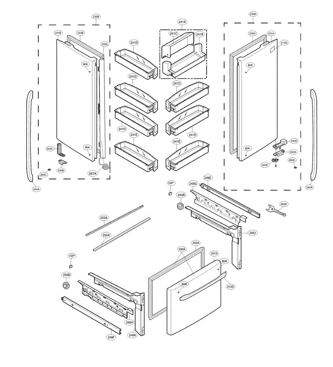 The Door Bracket is an OEM part for LG refrigerators. This bracket supports the refrigerator door by providing stability and ensuring proper alignment during opening and closing. It plays a crucial role in maintaining the door’s secure fit, which is essential for maintaining the internal temperature and efficiency of the appliance.