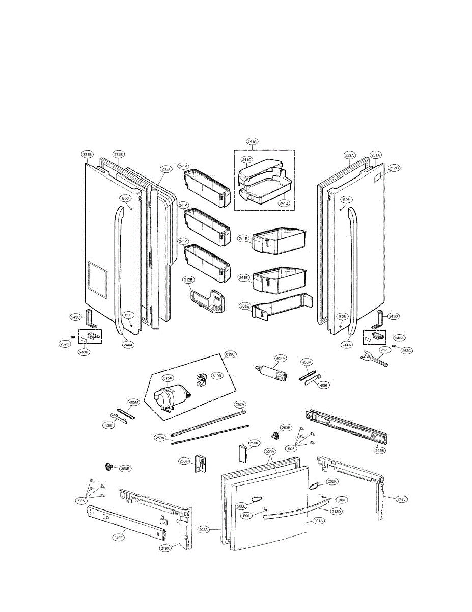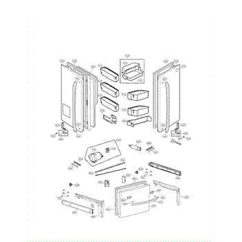 Door basket assembly for bottom-mount refrigerators. Installs inside the door to organize items. Replace if cracked, broken, or missing compartments.