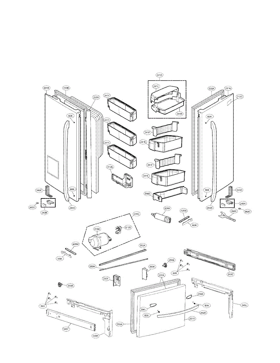 Front cover assembly for bottom-mount refrigerators. Replaces cracked, broken, or damaged exterior cover panels. Essential for restoring appearance.