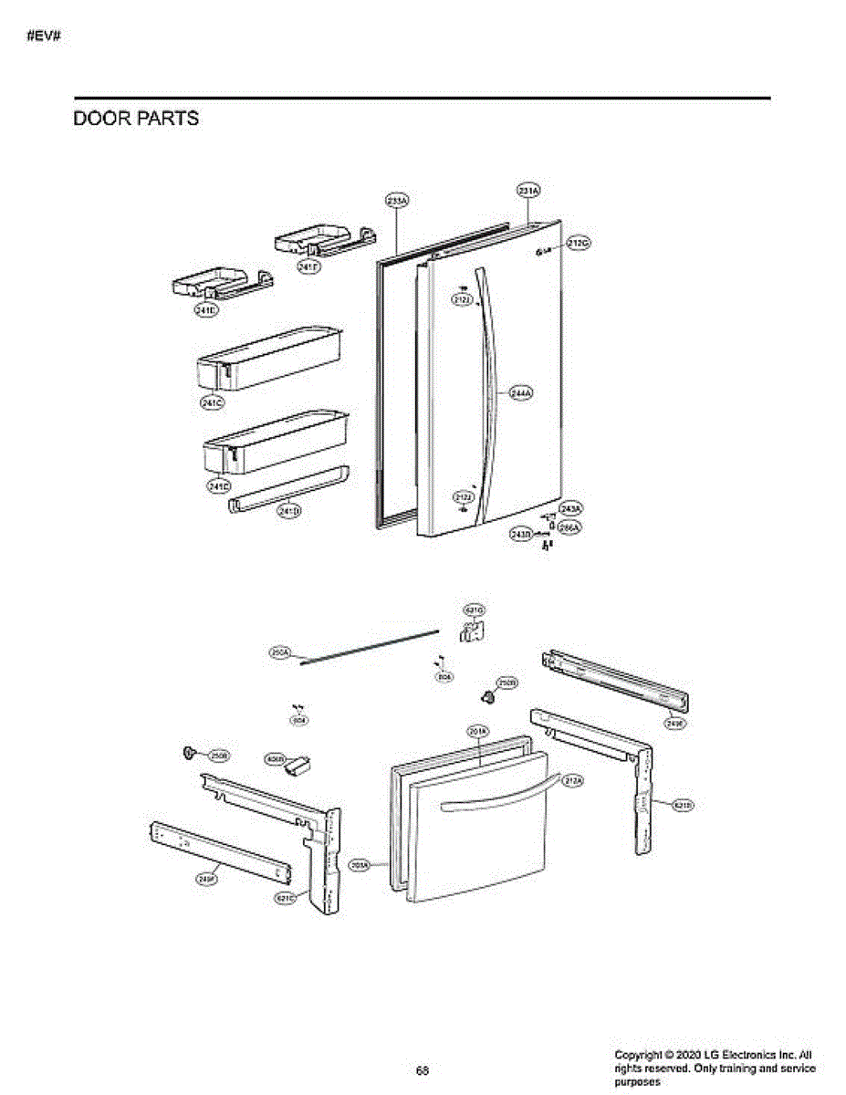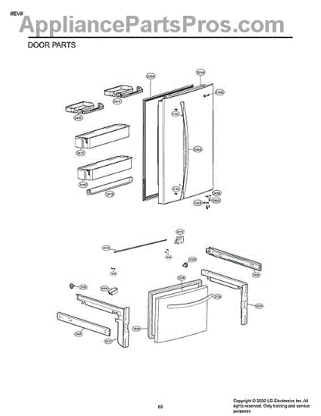 The Door Reversal Kit is an OEM replacement part for LG refrigerators. This comprehensive kit allows for the reversible installation of the refrigerator door, permitting left or right side opening depending on the needs and layout of the kitchen space. The door reversal kit includes all necessary mounting brackets, hardware, and instructions to swap the door hinge direction.