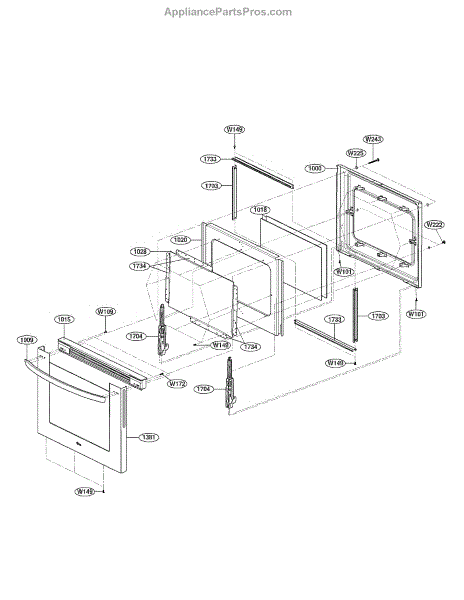 Inner door cover panel for gas ranges. Protects internal door components. Replace if cracked, damaged, or missing to restore door appearance and function.