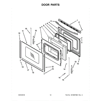 This frame surrounds and supports the window glass in your oven door, keeping the glass secure and aligned. Replace a bent or corroded frame to address loose glass and restore the door's proper fit and clean appearance.