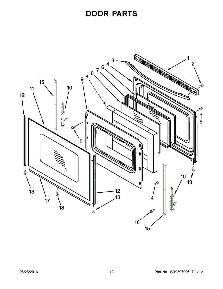 The Door Trim is an OEM replacement part for Whirlpool ranges. It covers the outer edge of the oven door, protecting it from wear and dust while retaining heat and improving aesthetics.