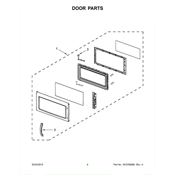 This microwave door assembly replaces a damaged or misaligned door to restore proper latching, interlock engagement, and appearance. Install it when the door is cracked, warped, or won't close so the microwave can operate as designed.