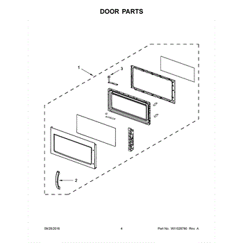 This microwave door assembly replaces a damaged or misaligned door to restore proper latching, interlock engagement, and appearance. Install it when the door is cracked, warped, or won't close so the microwave can operate as designed.