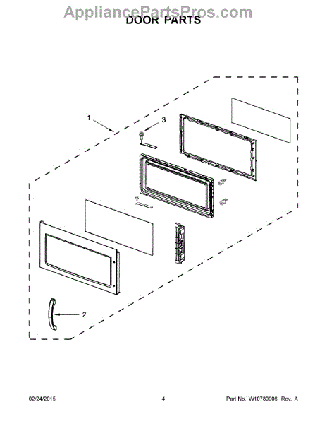 This microwave door assembly replaces a damaged or misaligned door to restore proper latching, interlock engagement, and appearance. Install it when the door is cracked, warped, or won't close so the microwave can operate as designed.