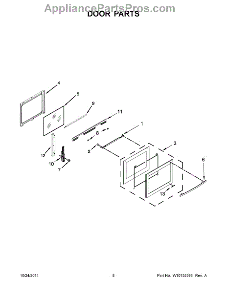 This door liner is the oven's inner door panel that helps protect the door cavity and support the inner glass. Replaces a damaged or worn liner to restore a clean interior surface and proper glass fit. What it does: