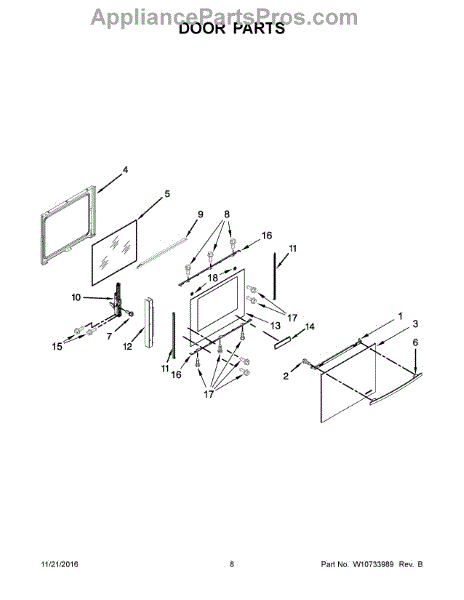 This door liner is the oven's inner door panel that helps protect the door cavity and support the inner glass. Replaces a damaged or worn liner to restore a clean interior surface and proper glass fit. What it does: