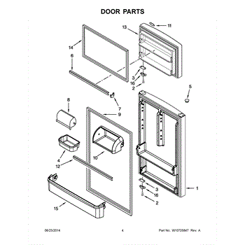 The Door Shelf Bin is an OEM part for Whirlpool refrigerators. It provides organized storage on the refrigerator door, allowing quick access to frequently used items like eggs, butter, or condiments.