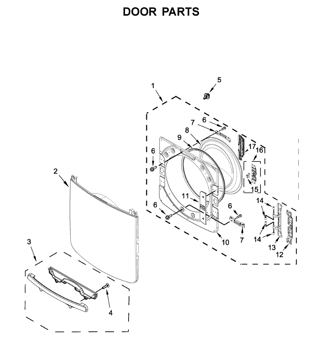 The Inner Door is an OEM part for Whirlpool dryers. It forms the inner layer of the dryer door, providing insulation and protection for the drum and other internal parts.