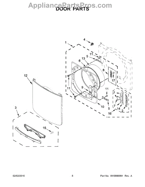 The Door Hinge is an OEM replacement part for Whirlpool dryers. Responsible for securely attaching the dryer door, these hinges play a vital role in usability. Proper functioning of the hinge is crucial for maintaining the door’s alignment and ensuring it closes tightly to retain heat during the drying cycles. Causes of a bad hinge can include normal wear and tear over prolonged use cycles. Excess weight or strain on the door from heavy loads could damage hinge components over time. Symptoms of a bad hinge include: