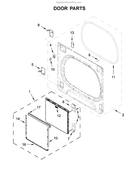 The Door is an OEM replacement part for Whirlpool electric and gas dryers. Designed to provide controlled access to the drying drum interior, it is also fitted with view glass for visibility into the tumbling load.