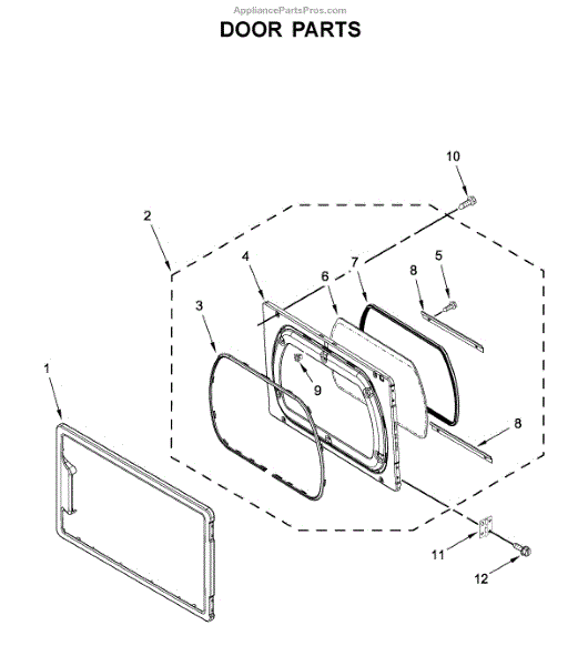 Inner door assembly for dryers. Installs on the interior side of the dryer door. Replace if cracked, broken, warped, or damaged from regular use.