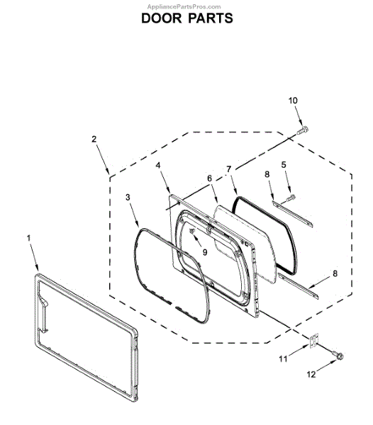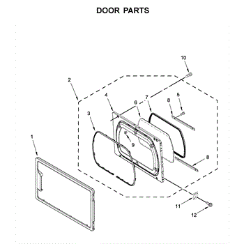 Inner door assembly for dryers. Installs on the interior side of the dryer door. Replace if cracked, broken, warped, or damaged from regular use.