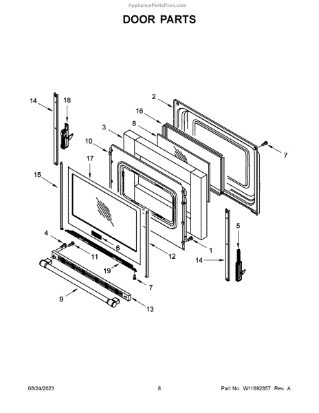 The Door Trim is an OEM replacement part for Whirlpool ranges. It is the outer decorative coating that wraps around the edges of the oven door opening. The trim piece provides a sleek finished look while protecting internal elements from accidental contact when accessing the oven cavity. For Right-Hand use W10761014
