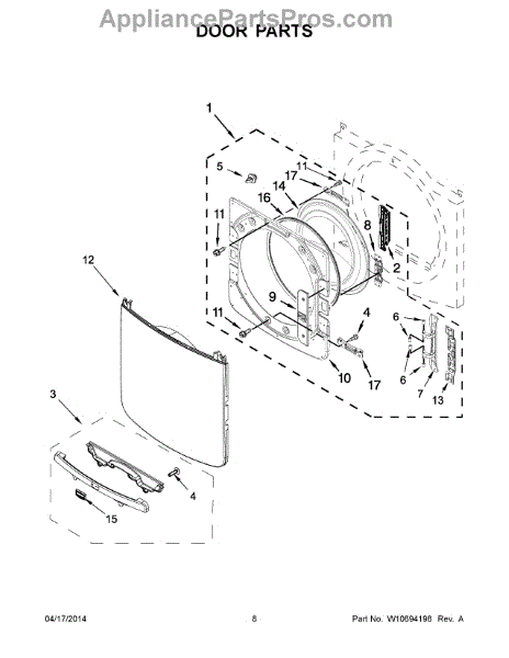 The Inner Door is an OEM part for Whirlpool dryers. It forms the inner layer of the dryer door, providing insulation and protection for the drum and other internal parts.