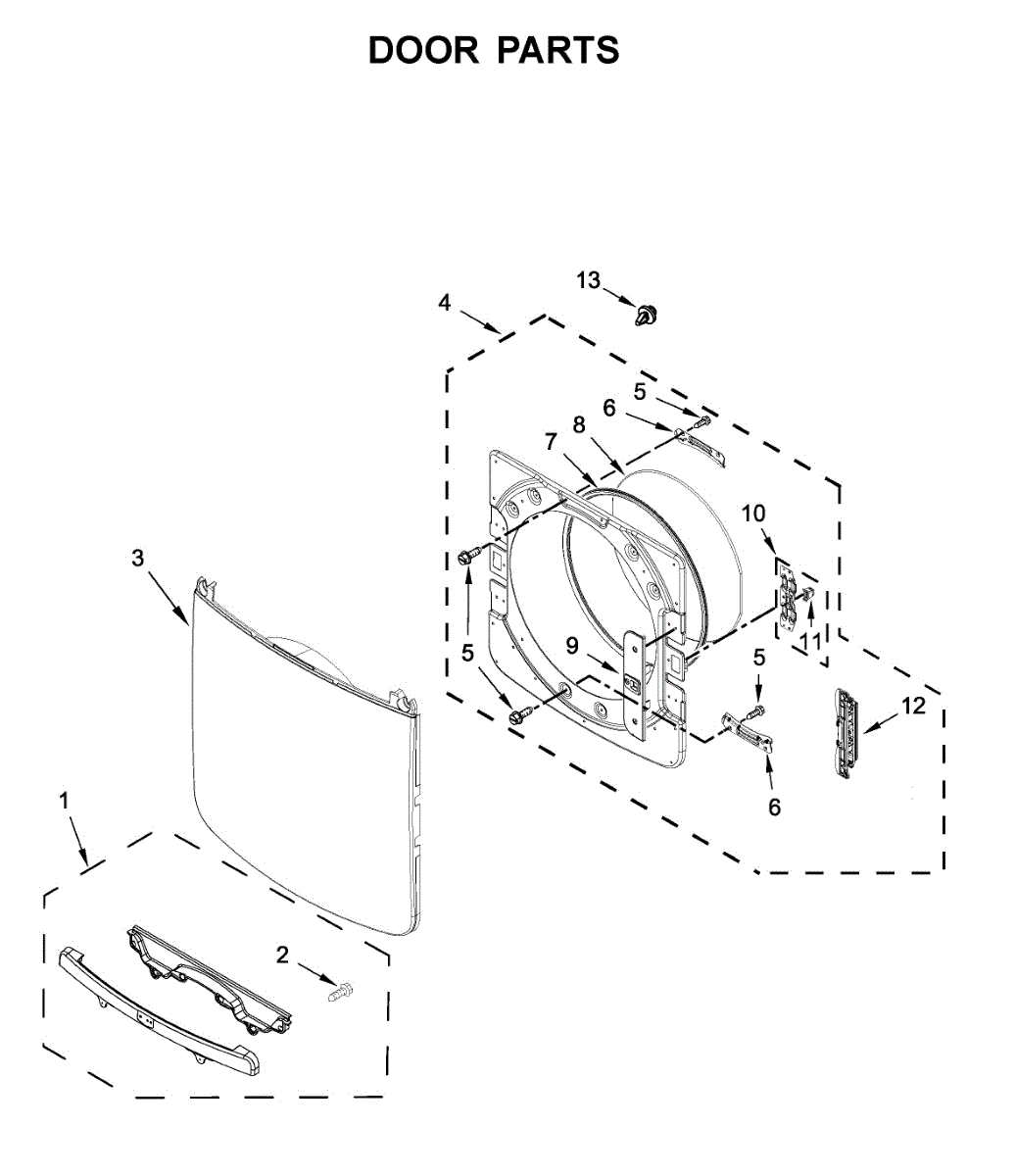 The Inner Door is an OEM part for Whirlpool dryers. It forms the inner layer of the dryer door, providing insulation and protection for the drum and other internal parts.