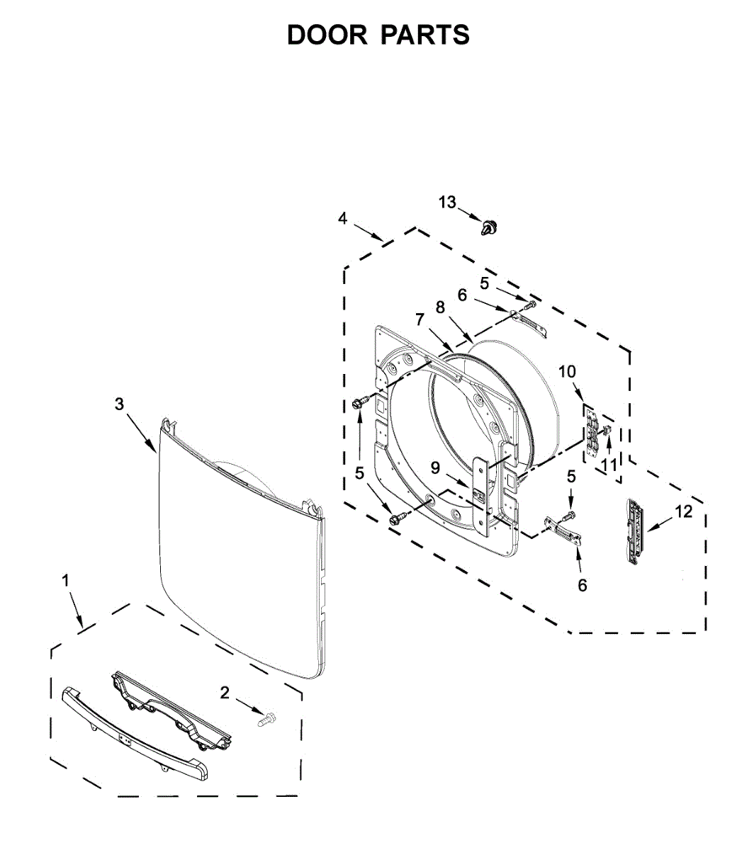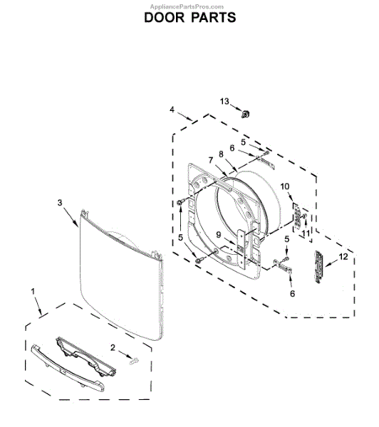 The Inner Door is an OEM part for Whirlpool dryers. It forms the inner layer of the dryer door, providing insulation and protection for the drum and other internal parts.