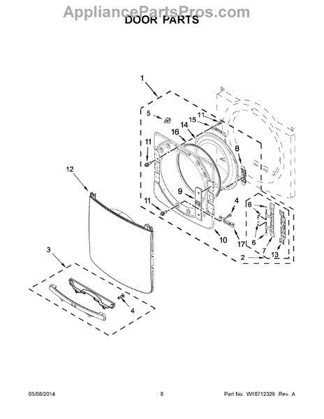 The Inner Door is an OEM part for Whirlpool dryers. It forms the inner layer of the dryer door, providing insulation and protection for the drum and other internal parts.