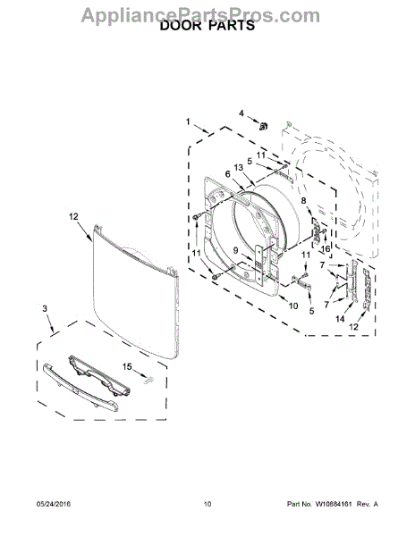 The Inner Door is an OEM part for Whirlpool dryers. It forms the inner layer of the dryer door, providing insulation and protection for the drum and other internal parts.