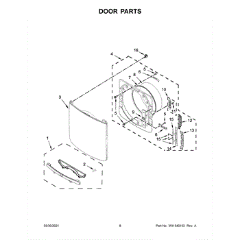 Dryer door assembly restores proper closure and appearance when original is cracked, dented, or damaged. Includes mounting surface for seals and handles. Confirm fit with your model number before ordering.