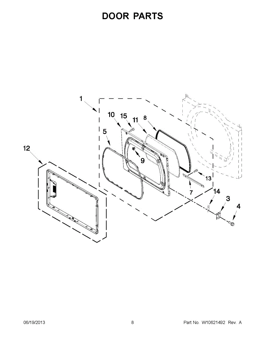 This outer door assembly replaces a damaged or cosmetically worn outer door panel to restore the appliance's front appearance and provide a stable mounting surface for the inner door components. It fits the existing hinge and latch locations for a direct replacement. What it does: