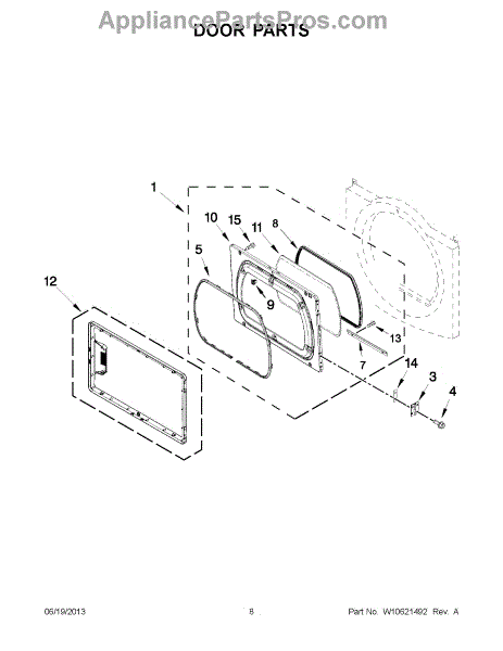 This outer door assembly replaces a damaged or cosmetically worn outer door panel to restore the appliance's front appearance and provide a stable mounting surface for the inner door components. It fits the existing hinge and latch locations for a direct replacement. What it does: