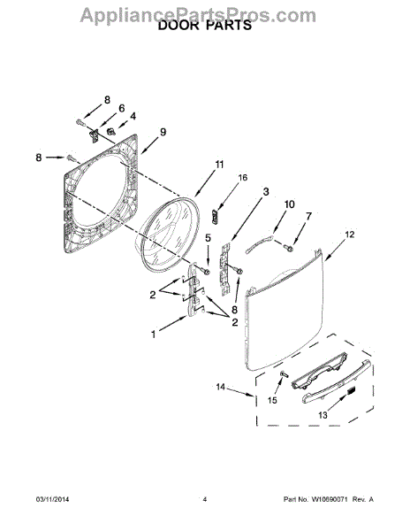 Replaces the outer door panel on your washer. Install this assembly when the exterior door skin is cracked, dented, or cosmetically damaged.
