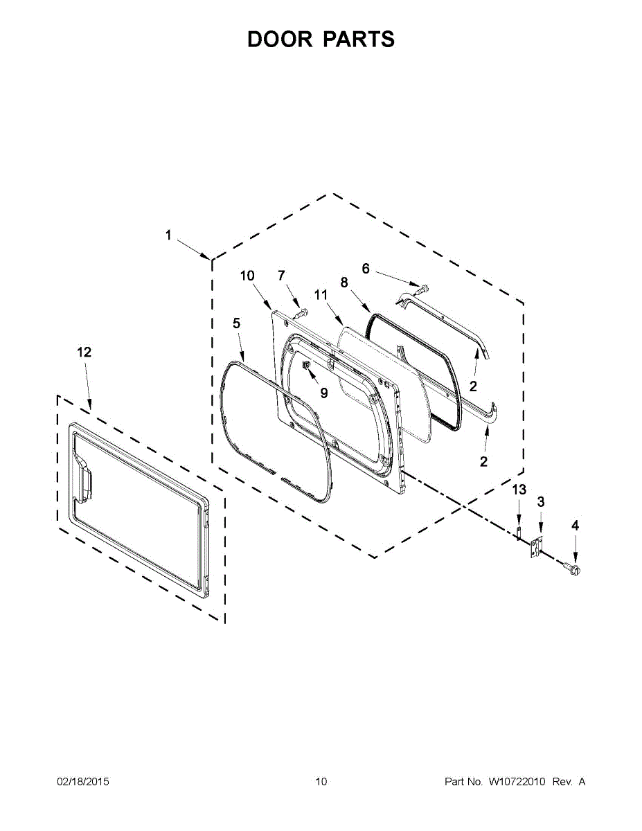 This outer door assembly replaces a damaged or cosmetically worn outer door panel to restore the appliance's front appearance and provide a stable mounting surface for the inner door components. It fits the existing hinge and latch locations for a direct replacement. What it does: