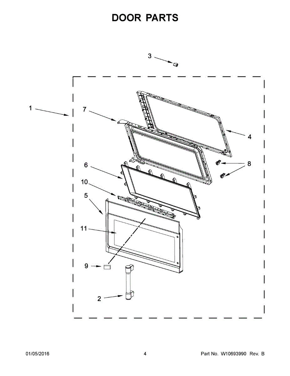 The Outer Door is an OEM part for Whirlpool built-in microwaves. It forms a sturdy outer shell that protects interior electronics and acts as the interface point when accessing the cooking chamber.