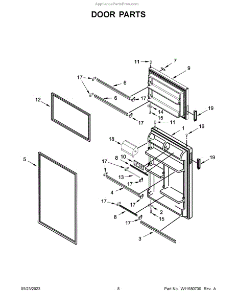 The Door trim is an OEM replacement part for Whirlpool refrigerators. It provides a sturdy support for storing items on the door, providing convenient access to frequently used condiments, beverages, and other essentials. This door shelf bar ensures that your items are securely held in place, preventing them from falling or shifting during opening and closing of the refrigerator door.