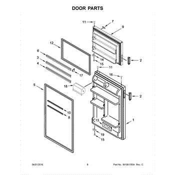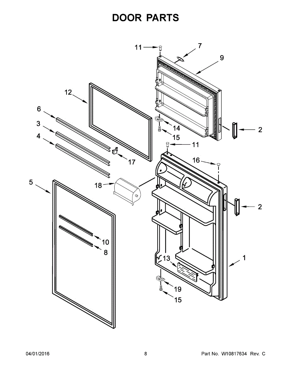 The Door Trim is an OEM part for Whirlpool refrigerators. It acts as a trim and edging along refrigerator shelves located on the door. The shelf trim allows items placed on shelves to be properly contained and prevent accidental falls. Causes of a bad shelf trim include cracks, chips or peeling of the trim material from years of use and stresses from items placed on shelves. Symptoms of a bad shelf trim include:
