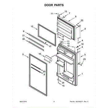 The Compartment Door is an OEM part for Whirlpool refrigerators. It is designed to cover and protect specific compartments within the refrigerator, such as the dairy or deli section, helping to maintain the ideal temperature and humidity levels for stored items. It measures approximately 9 inches by 6 inches.