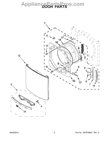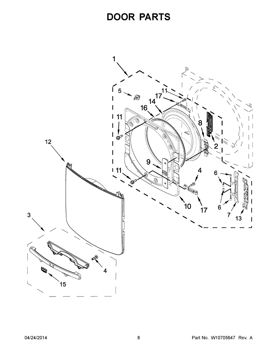 The Inner Door is an OEM part for Whirlpool dryers. It forms the inner layer of the dryer door, providing insulation and protection for the drum and other internal parts.