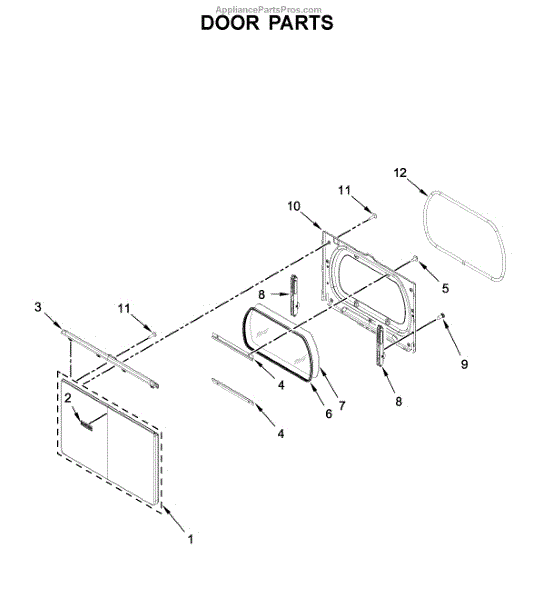 This outer door assembly replaces a damaged or worn outer door panel to restore the appliance's appearance and protect internal door components. It provides a finished exterior surface and mounting support for door hardware. What it does: