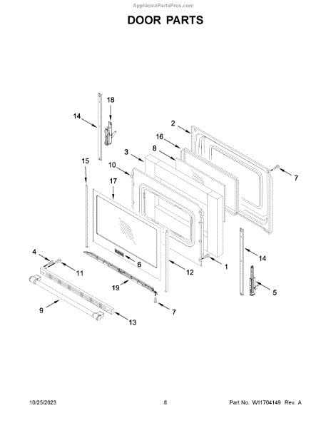 The Door Trim is an OEM replacement part for Whirlpool ranges. It is the outer decorative coating that wraps around the edges of the oven door opening. The trim piece provides a sleek finished look while protecting internal elements from accidental contact when accessing the oven cavity. For Right-Hand use W10761014