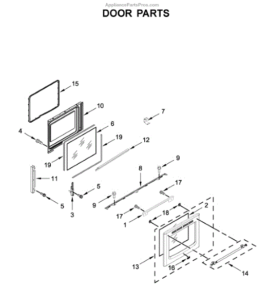 This door liner is the oven's inner door panel that helps protect the door cavity and support the inner glass. Replaces a damaged or worn liner to restore a clean interior surface and proper glass fit. What it does: