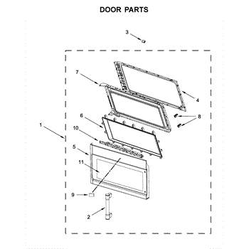 • Provides the full front door, including outer panel, inner liner, glass, and latch area so the microwave can close and latch safely.