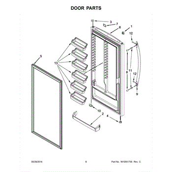 Complete freezer door assembly. Replaces damaged, cracked, or warped doors that no longer seal properly. Includes full door structure for installation.