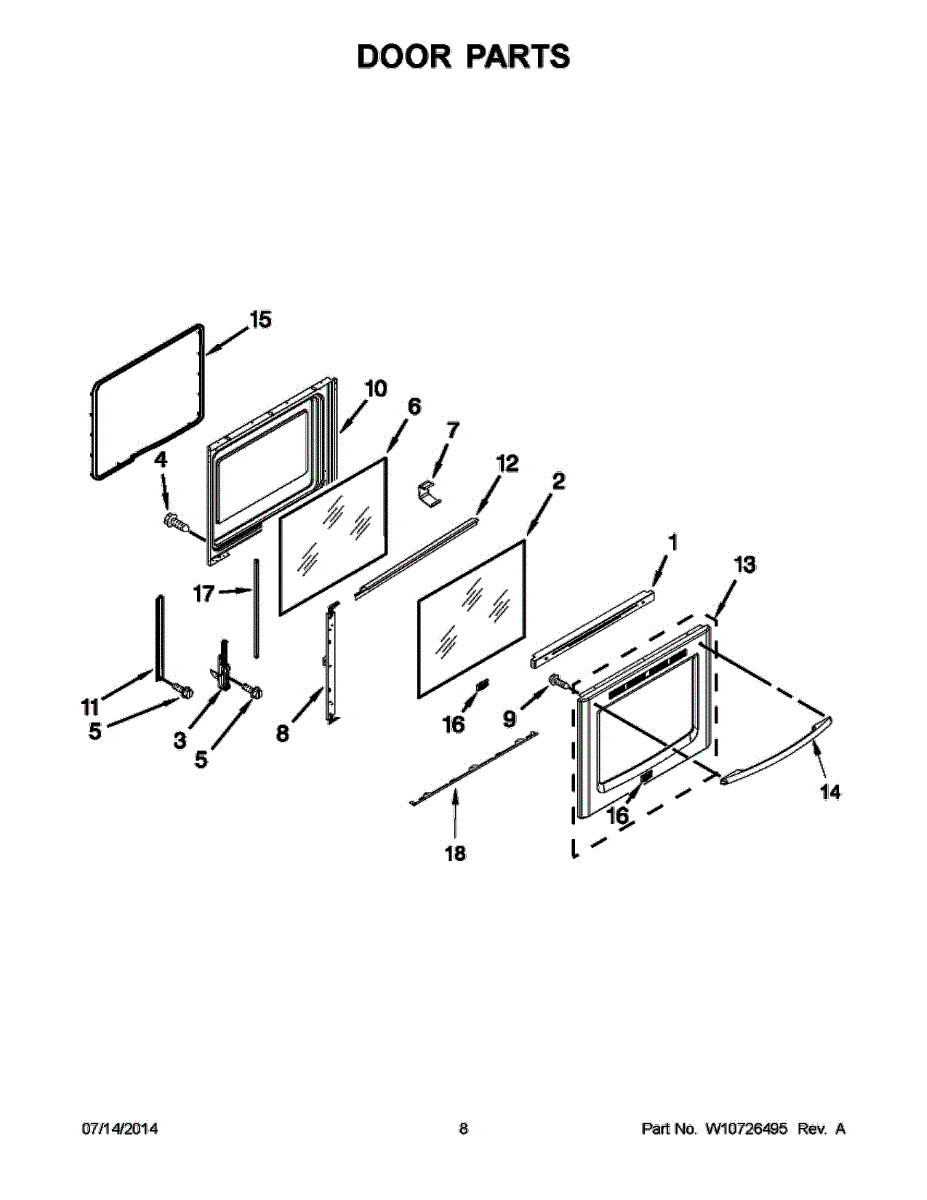 This inner oven door liner replaces the damaged or warped inner panel that supports the oven door glass and helps contain heat inside the oven cavity. It restores a solid mounting surface for door glass and internal components. What it does: