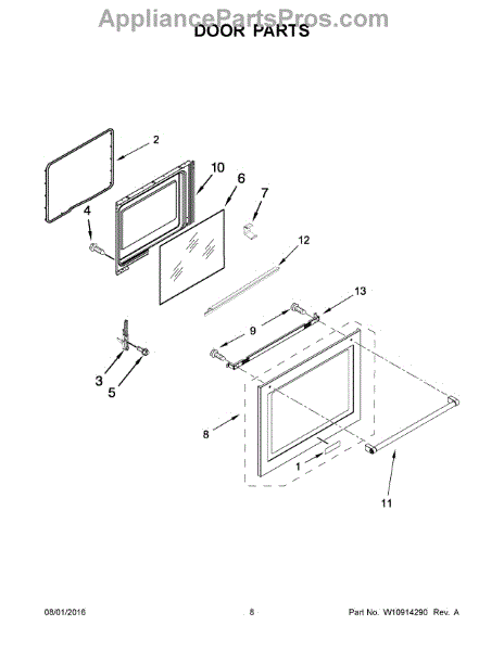 This door liner is the oven's inner door panel that helps protect the door cavity and support the inner glass. Replaces a damaged or worn liner to restore a clean interior surface and proper glass fit. What it does: