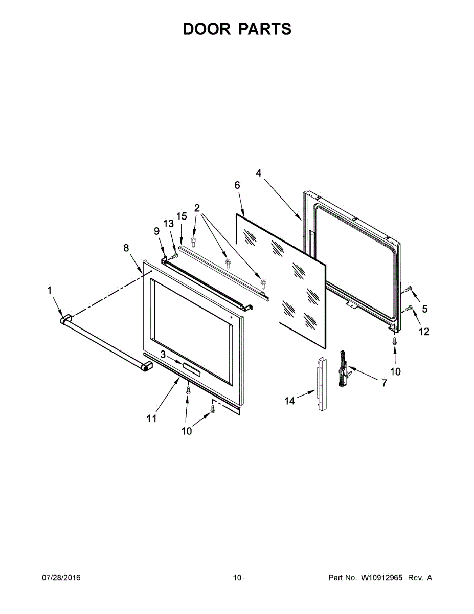 The Glass Door is an OEM replacement part for Whirlpool ranges. It provides a transparent barrier for safe, convenient monitoring of baking and cooking.